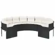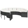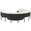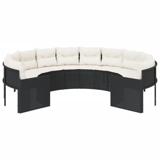 vidaXL Vrtni kavč z blazinami okrogel črn poli ratan