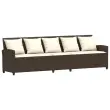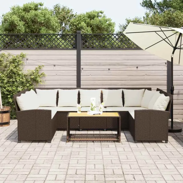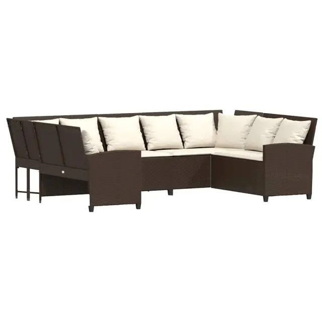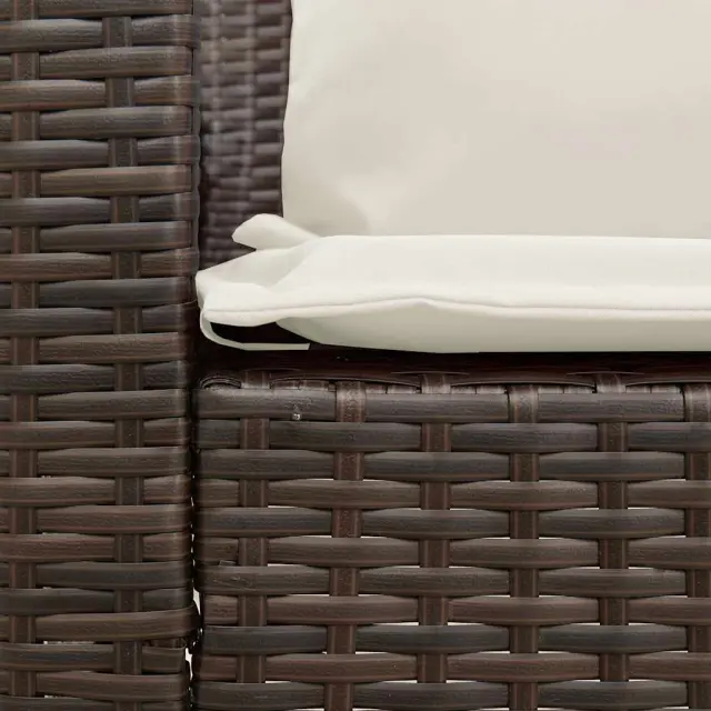 Sprostite se in uživajte na prostem na tem udobnem vrtnem kavču! Trpežen material: PE ratan, znan tudi kot poli ratan, je močan sintetični material, ki ne potrebuje vzdrževanja in je videti kot naravni ratan. Je lahek, enostaven za čiščenje in se zaradi svoje vzdržljivosti in odpornosti na vremenske vplive pogosto uporablja za zunanje pohištvo.Udobno sedenje: To zunanje pohištvo z debelo oblazinjenimi blazinami zagotavlja udobno sedenje.Modularna zasnova: Ta komplet zunanjega pohištva ima modularno zasnovo, zaradi česar je popolnoma prilagodljiv in enostaven za premikanje, tako da lahko zunanjo garnituro postavite kakor koli želite.Prevleko je mogoče odstraniti in oprati: Te sedežne blazine imajo odstranljive prevleke za lažje pranje in vzdrževanje.Robusten in stabilen okvir: Prašno barvan jekleni okvir zagotavlja, da je vrtno pohištvo močno in stabilno za vsakodnevno uporabo na prostem. Dobro je vedeti:Če želite, da vaše zunanje pohištvo ostane lepo, vam priporočamo, da ga zaščitite z vodoodporno prevleko.Maks. nosilnost (na sedež): 110 kgUV-odpornoPotrebno sestavljanje: DaVrtni kavč:Barva: RjavaMaterial: PE ratan, jeklen okvir s prašnim premazomCelotne dimenzije: 288 x 181 x 87,5 cm (Š x G x V)Širina sedeža: 267 cmGlobina sedeža: 57 cmVišina sedeža od tal (brez blazine): 43 cmVišina naslonjala za roke, merjena od tal: 61 cmBlazina:Barva: Kremno belaMaterial prevleke: Tkanina (100 % poliester)Material za polnjenje hrbtne blazine Material: vlakna PPPolnilo sedežne blazine: PenaDimenzije sedežne blazine (L): 106 x 57 x 3 cm (Š x G x D)Dimenzije sedežne blazine (S): 55 x 57 x 3 cm (Š x G x D)Dimenzije blazine za hrbet: 53 x 43 x 12 cm (D x Š x D)Paket vsebuje:1 x Vrtni kavč4 x sedežna blazina s snemljivo in pralno prevleko (L)1 x sedežna blazina s snemljivo in pralno prevleko (S)11 x Hrbtna blazina s snemljivo in pralno prevleko 3365330