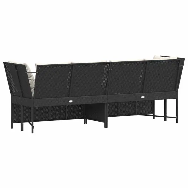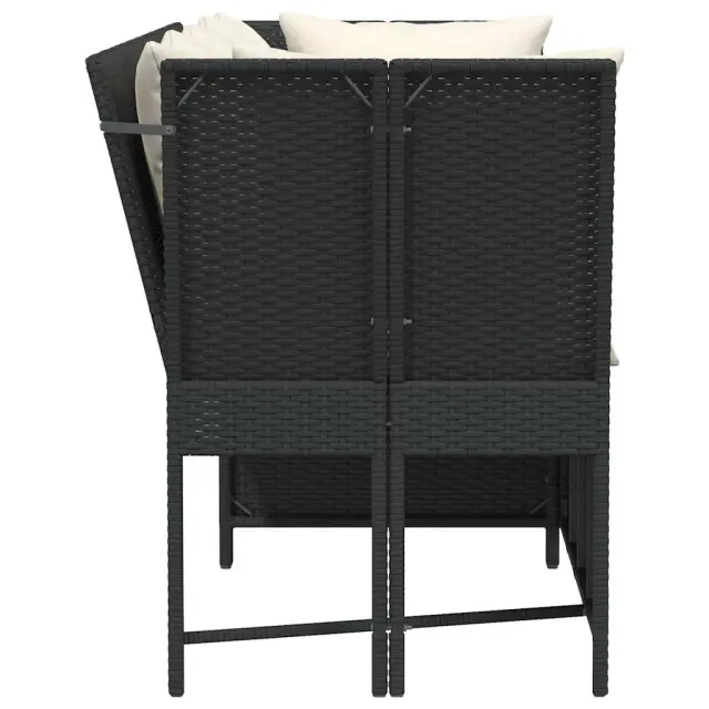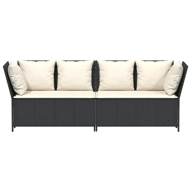 vidaXL Vrtni kavč z blazinami črn poli ratan