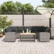 Sprostite se in uživajte na prostem na tem udobnem vrtnem kavču! Trpežen material: PE ratan, znan tudi kot poli ratan, je močan sintetični material, ki ne potrebuje vzdrževanja in je videti kot naravni ratan. Je lahek, enostaven za čiščenje in se zaradi svoje vzdržljivosti in odpornosti na vremenske vplive pogosto uporablja za zunanje pohištvo.Udobno sedenje: To zunanje pohištvo z debelo oblazinjenimi blazinami zagotavlja udobno sedenje.Modularna zasnova: Ta komplet zunanjega pohištva ima modularno zasnovo, zaradi česar je popolnoma prilagodljiv in enostaven za premikanje, tako da lahko zunanjo garnituro postavite kakor koli želite.Prevleko je mogoče odstraniti in oprati: Te sedežne blazine imajo odstranljive prevleke za lažje pranje in vzdrževanje.Robusten in stabilen okvir: Prašno barvan jekleni okvir zagotavlja, da je vrtno pohištvo močno in stabilno za vsakodnevno uporabo na prostem. Dobro je vedeti:Če želite, da vaše zunanje pohištvo ostane lepo, vam priporočamo, da ga zaščitite z vodoodporno prevleko.Maks. nosilnost (na sedež): 110 kgUV-odpornoPotrebno sestavljanje: DaVrtni kavč:Barva: SivaMaterial: PE ratan, jeklen okvir s prašnim premazomCelotne dimenzije: 288 x 181 x 87,5 cm (Š x G x V)Širina sedeža: 267 cmGlobina sedeža: 57 cmVišina sedeža od tal (brez blazine): 43 cmVišina naslonjala za roke, merjena od tal: 61 cmBlazina:Barva: Temno sivaMaterial prevleke: Tkanina (100 % poliester)Material za polnjenje hrbtne blazine Material: vlakna PPPolnilo sedežne blazine: PenaDimenzije sedežne blazine (L): 106 x 57 x 3 cm (Š x G x D)Dimenzije sedežne blazine (S): 55 x 57 x 3 cm (Š x G x D)Dimenzije blazine za hrbet: 53 x 43 x 12 cm (D x Š x D)Paket vsebuje:1 x Vrtni kavč4 x sedežna blazina s snemljivo in pralno prevleko (L)1 x sedežna blazina s snemljivo in pralno prevleko (S)11 x Hrbtna blazina s snemljivo in pralno prevleko 3365331