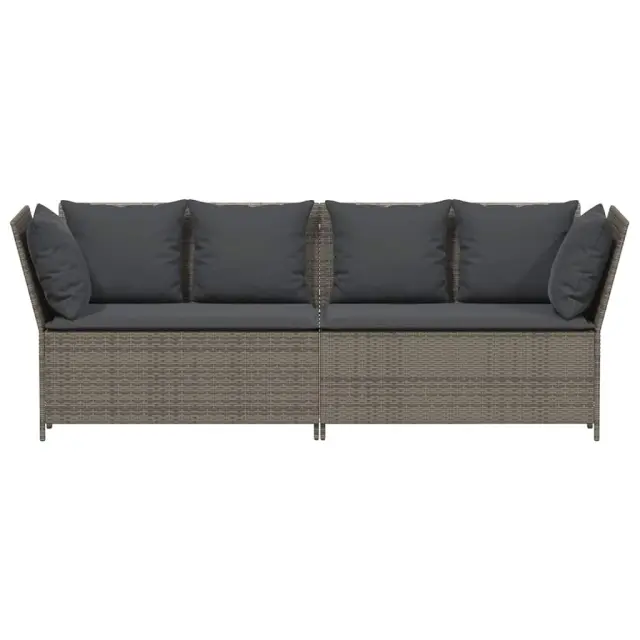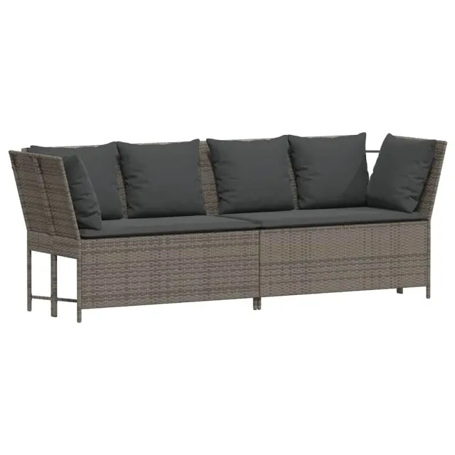 vidaXL Vrtni kavč z blazinami siv poli ratan