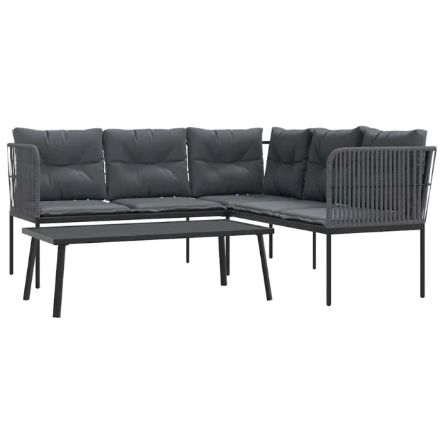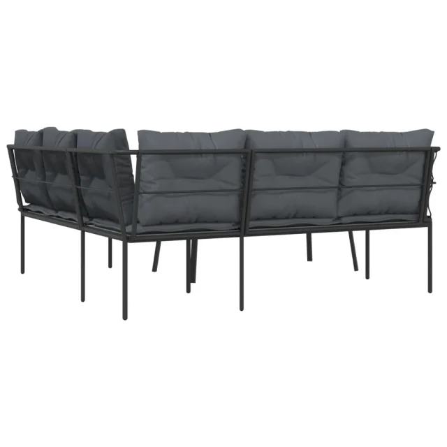 vidaXL Vrtni kavč z blazinami oblika črke L črno jeklo in tekstilen