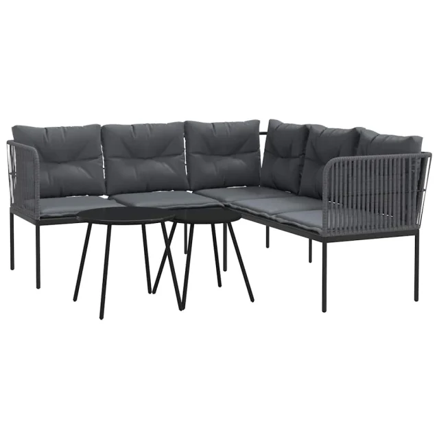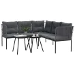 vidaXL Vrtni kavč z blazinami oblika črke L črno jeklo in tekstilen