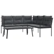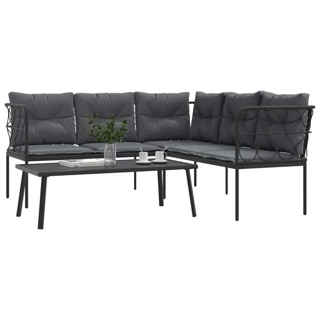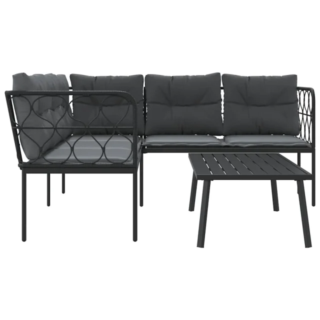 vidaXL Vrtni kavč z blazinami oblika črke L črno jeklo in tekstilen