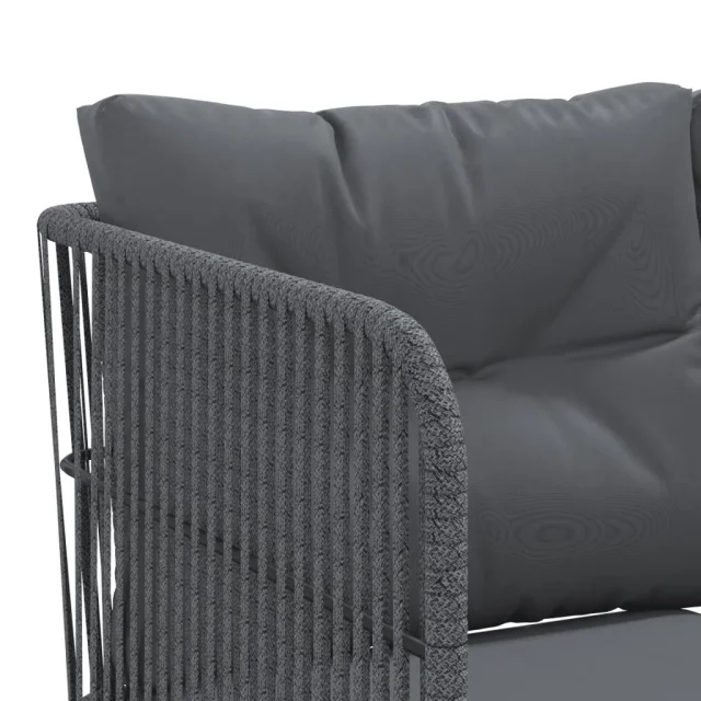 Ta vrtna sedežna garnitura je popoln dodatek za vaše dvorišče, teraso ali verando, saj zagotavlja udoben in vabljiv prostor za klepet z družino in prijatelji ali preprosto za sprostitev in uživanje na prostem.