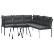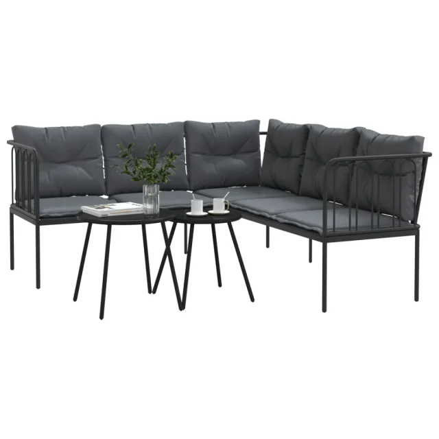 vidaXL Vrtni kavč z blazinami oblika črke L črno jeklo in tekstilen