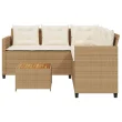 vidaXL Vrtni kavč z mizo in blazinami v obliki črke L bež poli ratan