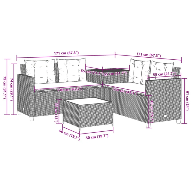 Ta vrtni kavč v obliki črke L je odličen dodatek za vaš vrt, teraso ali teraso, saj zagotavlja udoben in privlačen prostor za klepet z družino in prijatelji ali preprosto za sprostitev in uživanje na prostem.