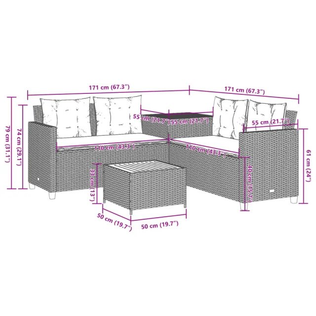 Ta vrtni kavč v obliki črke L je odličen dodatek za vaš vrt, teraso ali teraso, saj zagotavlja udoben in privlačen prostor za klepet z družino in prijatelji ali preprosto za sprostitev in uživanje na prostem.