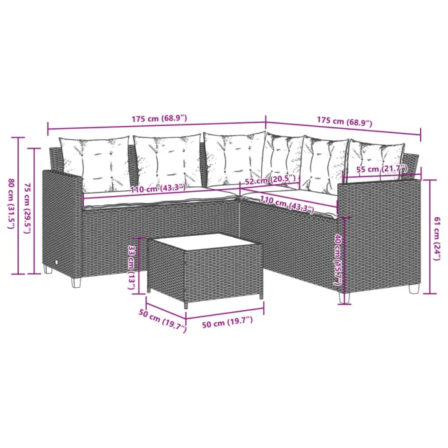 Ta vrtni kavč v obliki črke L je odličen dodatek za vaš vrt, teraso ali teraso, saj zagotavlja udoben in privlačen prostor za klepet z družino in prijatelji ali preprosto za sprostitev in uživanje na prostem.