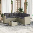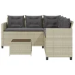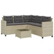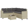 vidaXL Vrtni kavč z mizo in blazinami v obliki črke L siv poli ratan