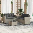 vidaXL Vrtni kavč z mizo in blazinami v obliki črke L siv poli ratan