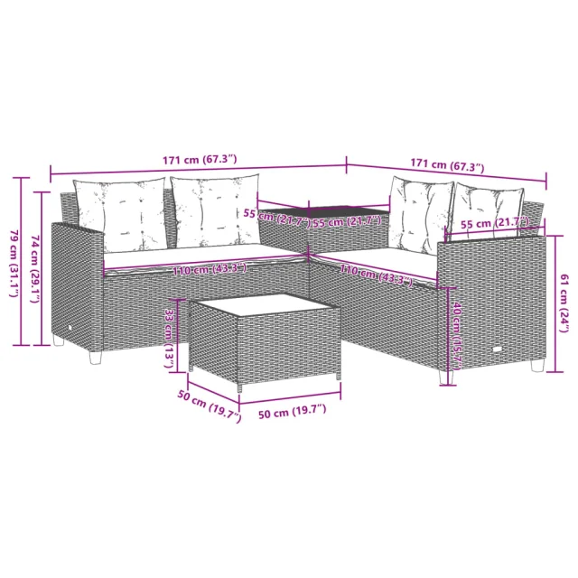 • Dimenzije: 171 x 171 x 74 cm (Š x G x V)