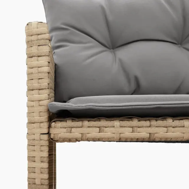 • Vzdržljiv material: PE ratan, znan tudi kot poli ratan, je močan sintetični material, ki zahteva malo vzdrževanja in je videti kot naravni ratan. Je lahek, enostaven za čiščenje in se zaradi svoje vzdržljivosti in odpornosti na vremenske vplive pogosto uporablja za zunanje pohištvo.