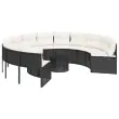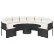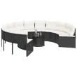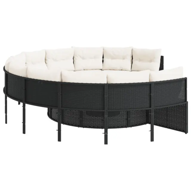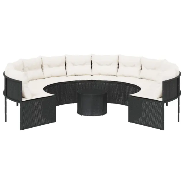 Ta vrtni kavč okrogle oblike je odličen dodatek za vaš vrt, teraso ali verando, saj zagotavlja udoben in privlačen prostor za klepet z družino in prijatelji ali preprosto za sprostitev in uživanje na prostem. Vzdržljiv material: PE ratan, znan tudi kot poli ratan, je močan sintetični material, ki zahteva malo vzdrževanja in je videti kot naravni ratan. Je lahek, enostaven za čiščenje in se zaradi svoje vzdržljivosti in odpornosti na vremenske vplive pogosto uporablja za zunanje pohištvo.Udobno sedenje: To zunanje pohištvo z debelo oblazinjenimi blazinami zagotavlja udobno sedenje.Prevleko je mogoče odstraniti in oprati: Te sedežne blazine imajo odstranljive prevleke za lažje pranje in vzdrževanje.Steklena mizna plošča: Površina zunanje mize je izdelana iz močnega in trpežnega kaljenega stekla, kar omogoča enostavno čiščenje z vlažno krpo in vašemu zunanjemu prostoru doda pridih elegance.Robusten in stabilen okvir: Prašno barvan jekleni okvir zagotavlja, da je vrtno pohištvo močno in stabilno za vsakodnevno uporabo na prostem. Dobro je vedeti:Če želite, da vaše zunanje pohištvo ostane lepo, vam priporočamo, da ga zaščitite z vodoodporno prevleko.Maksimalna nosilnost (na sedež): 110 kgUV-odpornoPotrebno sestavljanje: DaOkrogel vrtni kavč:Barva: ČrnaMaterial: PE ratan, jeklen okvir s prašnim premazomCelotne dimenzije: 287 x 75 cm (premer x V)Notranji premer: 160 cmSkupna globina: 240 cmGlobina sedeža: 62 cmVišina sedeža, merjena od tal (brez blazine): 40 cmKlubska mizica:Barva: ČrnaMaterial: PE ratan, jeklo s prašnim premazom, kaljeno stekloDimenzije: 51 x 36 cm (premer x V)Blazina:Barva: Kremno belaMaterial prevleke: Tkanina (100 % poliester)Polnilo sedežne blazine: PenaPolnilo hrbtne blazine: bombažna vlaknaDimenzije sedežne blazine za kavč: 64/106 x 65 x 3 cm (D x Š x D)Dimenzije hrbtne blazine: 55 x 40 x 13 cm (D x Š x D)Paket vsebuje:1 x Okrogel vrtni kavč1 x Klubska mizica12 x Blazina za hrbet6 x Sedežna blazina s snemljivo pralno prevleko 3318544