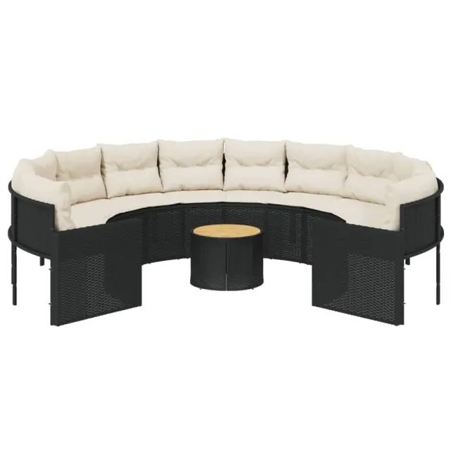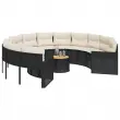 vidaXL Vrtni kavč z mizo in blazinami okrogel črn poli ratan