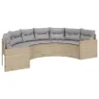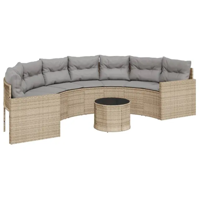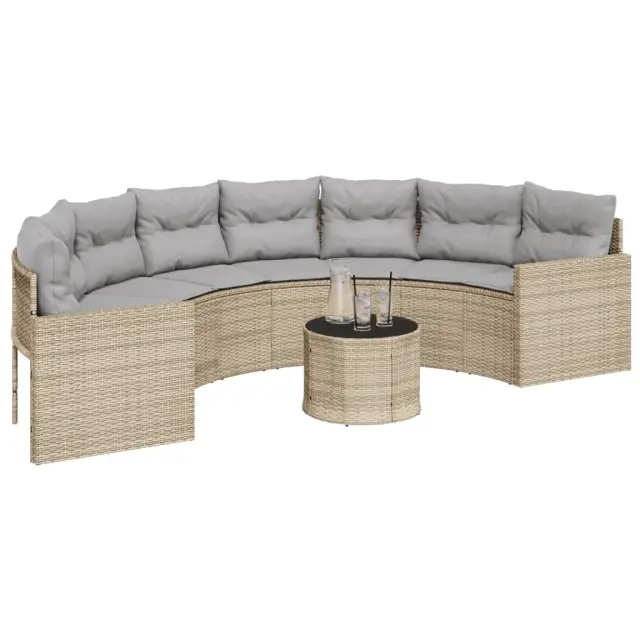 vidaXL Vrtni kavč z mizo in blazinami polkrožen bež poli ratan