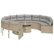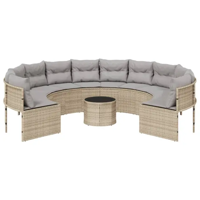 vidaXL Vrtni kavč z mizo in blazinami okrogel bež poli ratan