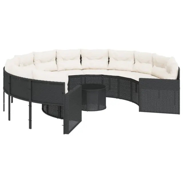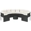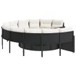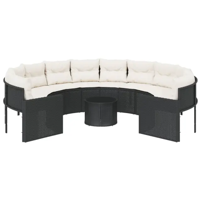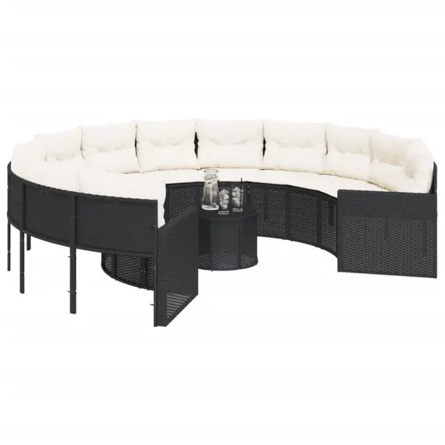 vidaXL Vrtni kavč z mizo in blazinami okrogel črn poli ratan