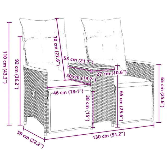 Sprostite se in uživajte na prostem na tem udobnem vrtnem kavču z možnostjo nagiba!