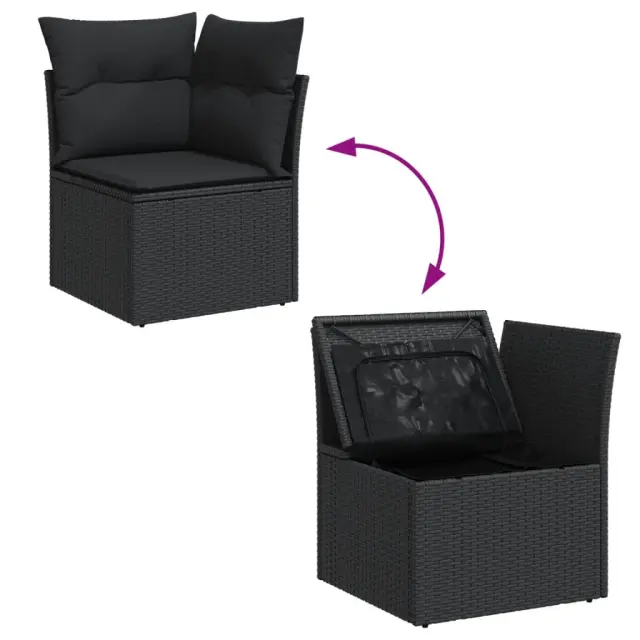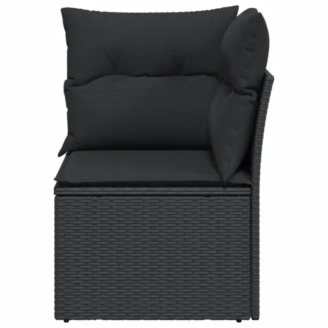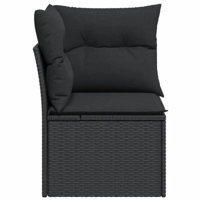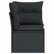 vidaXL Vrtni kotni kavč z blazinami črn poli ratan