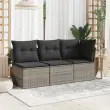 vidaXL Vrtni kotni kavč z blazinami siv poli ratan