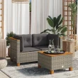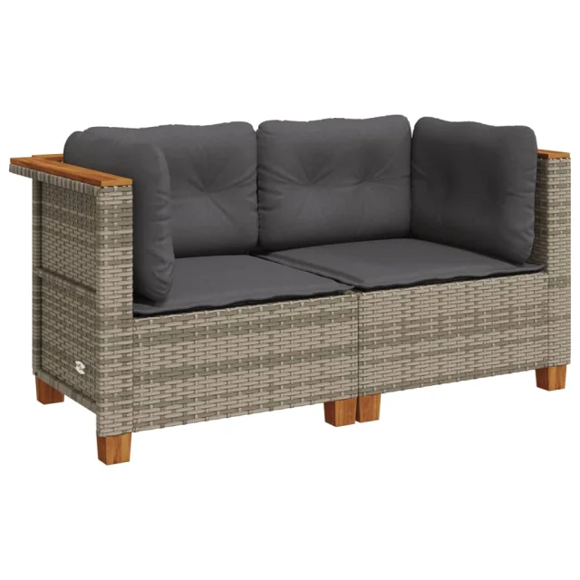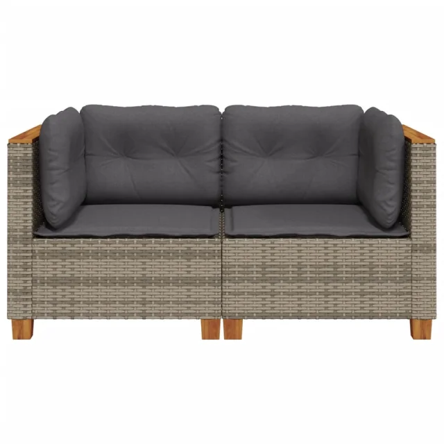vidaXL Vrtni kotni kavč z blazinami 2 kosa siv poli ratan