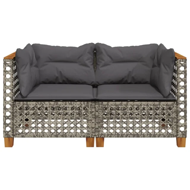 vidaXL Vrtni kotni kavč z blazinami 2 kosa siv poli ratan