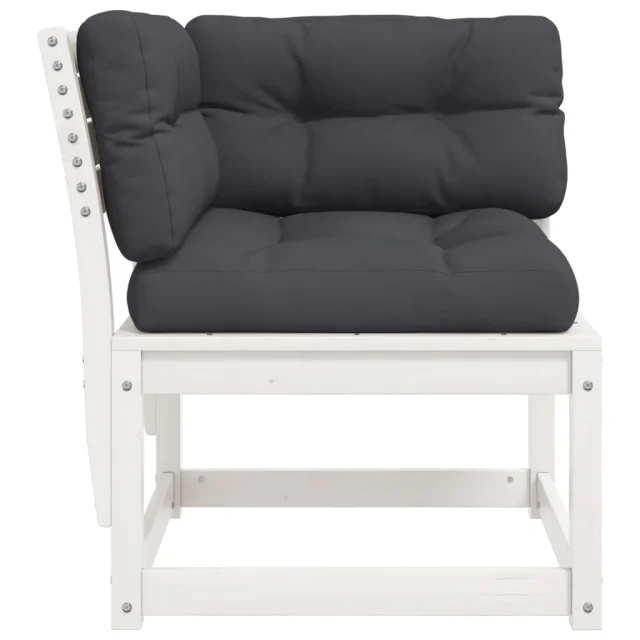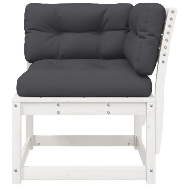 vidaXL Vrtni kotni kavč z blazinami bel 73x73x78 cm trdna borovina