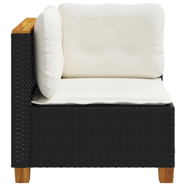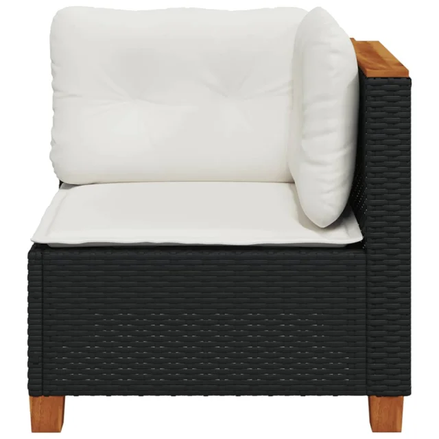 vidaXL Vrtni kotni kavč z blazinami črn poli ratan