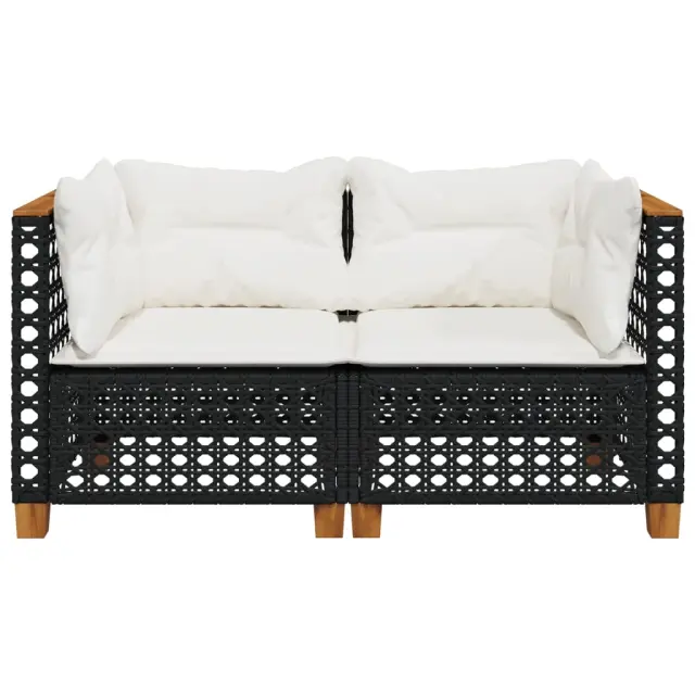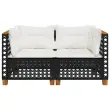 vidaXL Vrtni kotni kavči z blazinami 2 kosa črn poli ratan