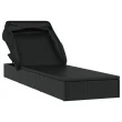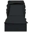 vidaXL Vrtni ležalnik z zložljivo streho črn 213x63x97 cm poli ratan