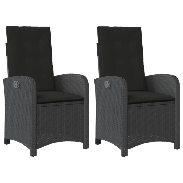 vidaXL Vrtni naslanjač 2 kosa z blazinami črn poli ratan