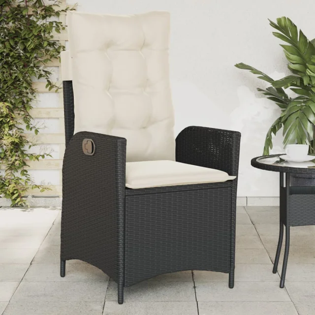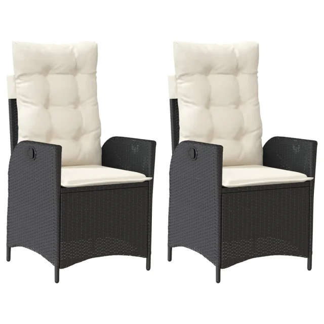 vidaXL Vrtni naslanjač 2 kosa z blazinami črn poli ratan