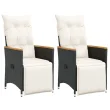 vidaXL Vrtni naslanjač 2 kosa z blazinami črn poli ratan