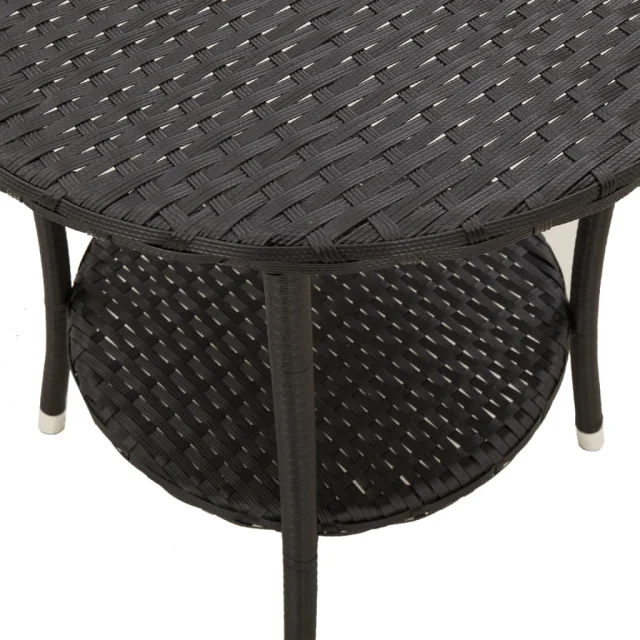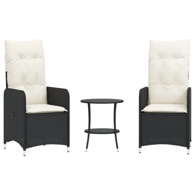 vidaXL Vrtni naslanjač 2 kosa z mizico črn poli ratan
