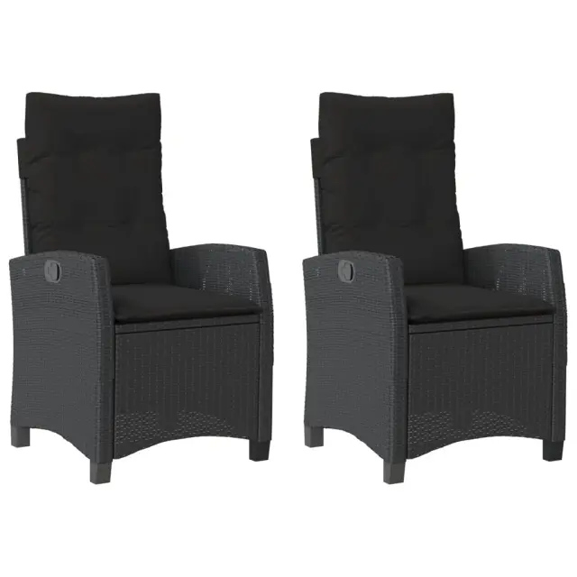 vidaXL Vrtni naslanjač 2 kosa z blazinami črn poli ratan