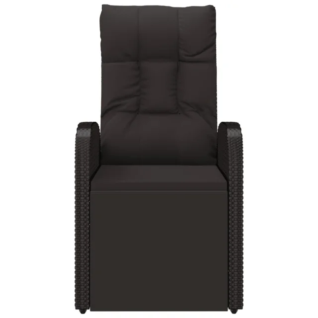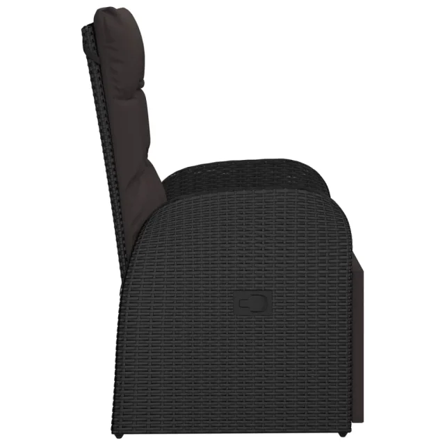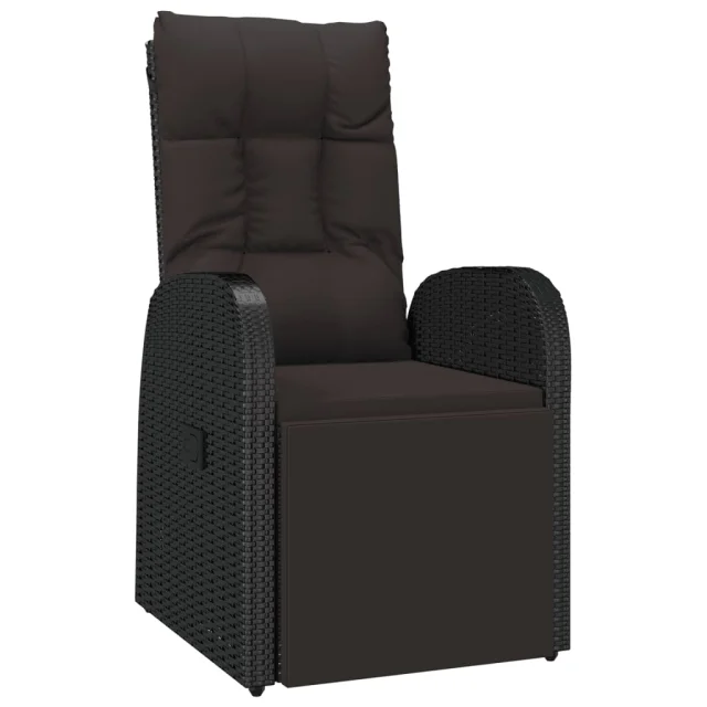 vidaXL Vrtni naslanjač z blazinami črn poli ratan