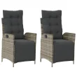 vidaXL Vrtni naslanjač z naslonom za noge 2 kosa siv poli ratan