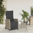 vidaXL Vrtni naslanjač z naslonom za noge siv poli ratan
