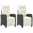 vidaXL Vrtni naslanjač z naslonom za noge 2 kosa črn poli ratan