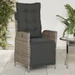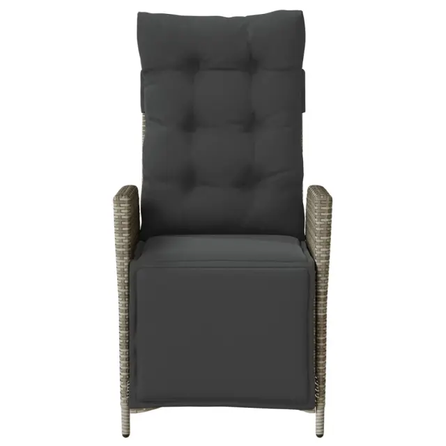 vidaXL Vrtni naslanjač z naslonom za noge siv poli ratan