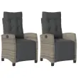 vidaXL Vrtni naslanjač z naslonom za noge 2 kosa siv poli ratan