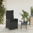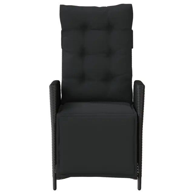 vidaXL Vrtni naslanjač z naslonom za noge črn poli ratan