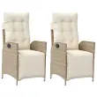 vidaXL Vrtni naslanjač z naslonom za noge 2 kosa bež poli ratan