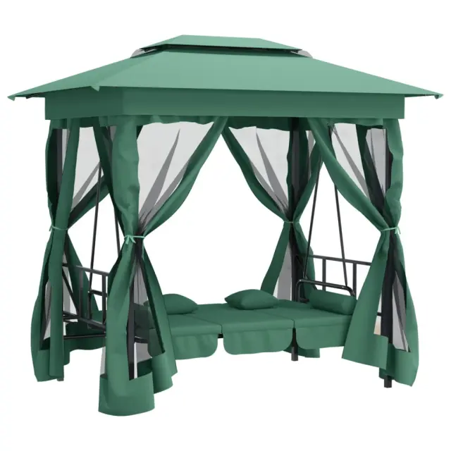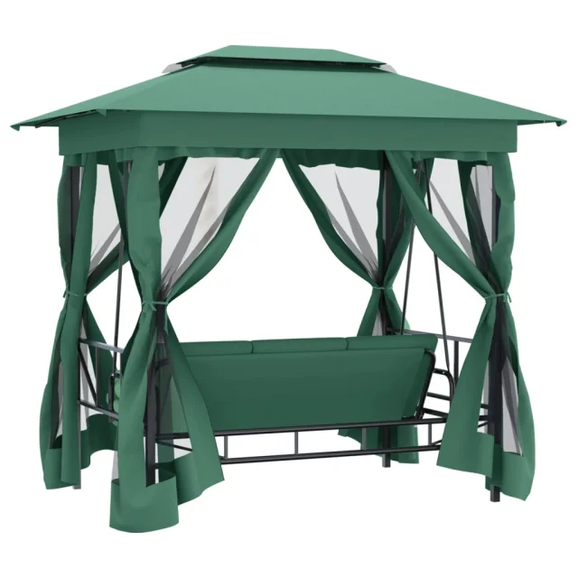 vidaXL Vrtni paviljon s prilagodljivo gugalnico zeleno blago in jeklo