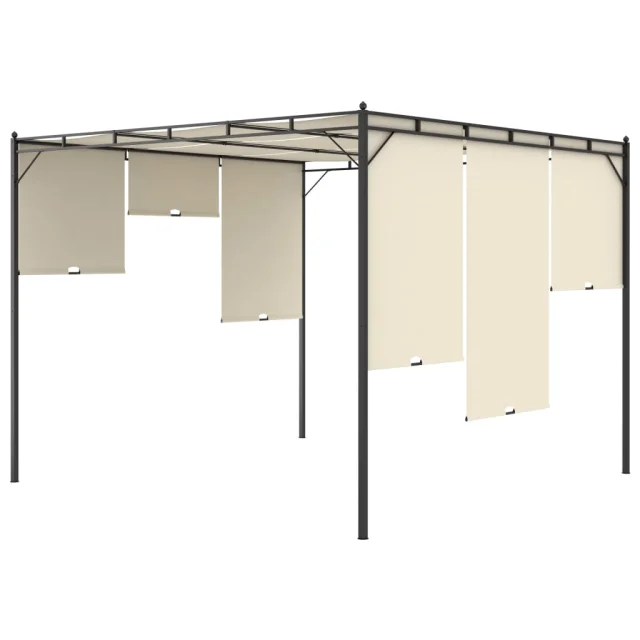 vidaXL Vrtni paviljon s stransko zaveso 3x3x2,25m krem