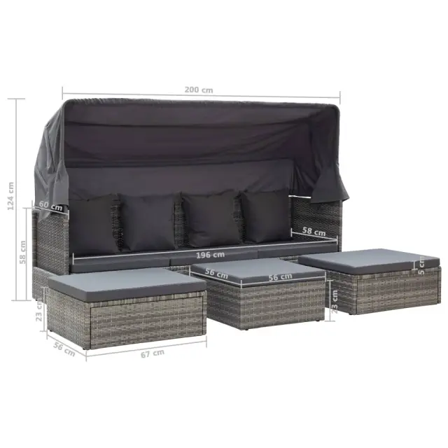 vidaXL Vrtni počivalnik s streho mešano siv poli ratan