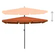 Ta senčnik za teraso iz UV-odpornega in nebledljivega poliestra zagotavlja optimalno zaščito pred soncem ter je preprost za čiščenje. Močan jeklen drog v kombinaciji s 4 rebri zagotavlja izjemno stabilnost in vzdržljivost senčnika. Izjemen dizajn tega zunanjega senčnika omogoča nagibanje senčnika in tako odlično blokiranje sonca. Zahvaljujoč ročičnemu mehanizmu lahko vrtni senčnik brez težav odprete in zaprete.