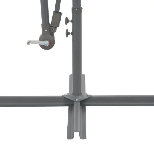 Senčnik je izdelan iz UV odpornega in barvno obstojnega poliestra, zato vam zagotavlja odlično zaščito pred soncem, poleg tega pa je preprost za čiščenje. Ponaša se s trpežnim križnim podstavkom, ki zagotavlja stabilnost. Ekskluziven dizajn omogoča nagibanje senčnika glede na položaj sonca. Močan kovinski drog s 6 vzdržljivimi palicami senčniku dodaja stabilnost in vzdržljivost. Ta vrtni senčnik je preprost za odpiranje in zapiranje, saj ima mehanizem za odpiranje s pomočjo ročice.